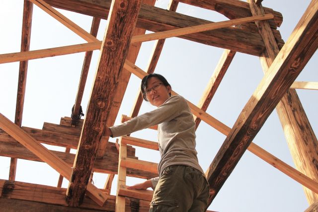 潘曦在云南納西族地區(qū)大木作現(xiàn)場考察木構(gòu)架節(jié)點(diǎn)做法。圖片由受訪者提供