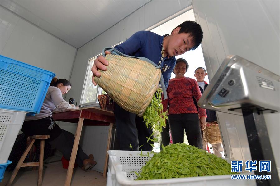 在江西省樂(lè)平市高家鎮(zhèn)朱家村高家白茶基地,工人在茶園里收購(gòu)春茶,這里是江西“一村一名大學(xué)生”工程的教學(xué)實(shí)踐基地之一(3月28日攝)。新華社記者彭昭之?dāng)z