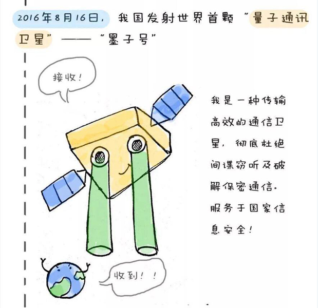 墨子號(hào)量子科學(xué)實(shí)驗(yàn)衛(wèi)星于2016年8月16日成功發(fā)射升空。中國量子衛(wèi)星首席科學(xué)家潘建偉院士介紹,如果說地面量子通信構(gòu)建了一張連接每個(gè)城市、每個(gè)信息傳輸點(diǎn)的“網(wǎng)”,那么量子科學(xué)實(shí)驗(yàn)衛(wèi)星就像一桿將這張網(wǎng)射向太空的“標(biāo)槍”。當(dāng)這張縱橫寰宇的量子通信“天地網(wǎng)”織就,海量信息將在其中來去如影,并且“無條件”安全。2017年1月18日,“墨子號(hào)”圓滿完成4個(gè)月的在軌測試任務(wù),正式交付用戶單位使用。