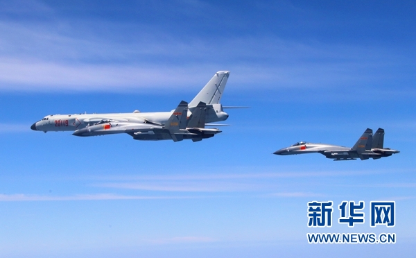 4月26日,人民空軍轟-6K等多型戰(zhàn)機實施“繞島巡航”訓(xùn)練課題。 新華社發(fā)(吳岳鵬 攝)