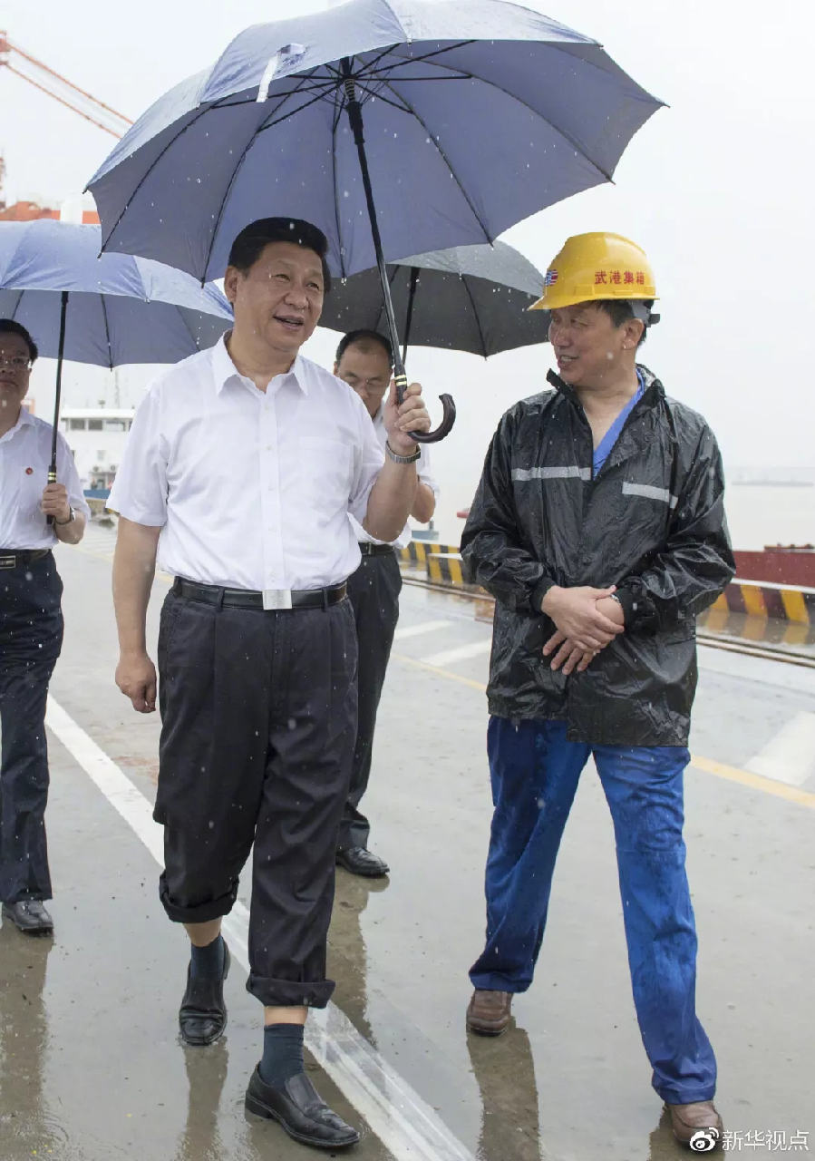 荊楚大地,江河縱橫。2013年7月21日上午,習(xí)近平冒著大雨前往武漢新港陽邏集裝箱港區(qū),卷起褲腿,打著雨傘,趟著積水,了解港口貨物吞吐量情況。他強(qiáng)調(diào),長(zhǎng)江流域要加強(qiáng)合作,充分發(fā)揮內(nèi)河航運(yùn)作用,發(fā)展江海聯(lián)運(yùn),把全流域打造成黃金水道。