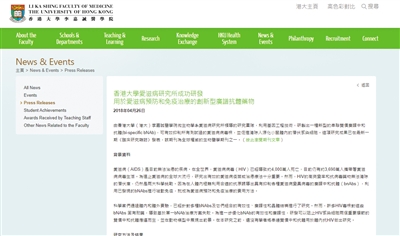 香港大學(xué)醫(yī)學(xué)院官方網(wǎng)站刊載了相關(guān)報道。網(wǎng)站截圖