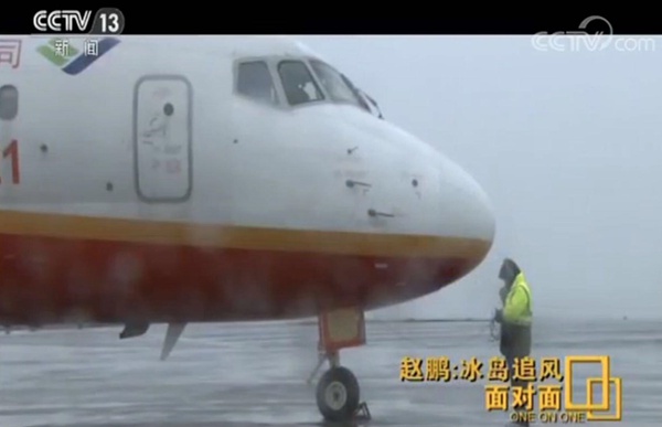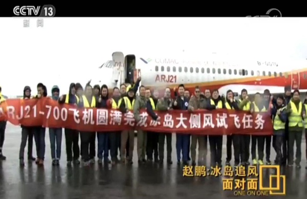 3月26日上午9點整,當(dāng)試飛機組終于得到允許起飛的指令時,天空中出現(xiàn)了一道絢麗的彩虹,伴隨著這個意外降臨的驚喜,試飛機組駕駛著ARJ21迎風(fēng)起飛。在強烈的側(cè)風(fēng)沖擊下,飛機的機身開始晃動,地面團隊成員的心也隨之提了起來。決定性的一刻即將到來,當(dāng)ARJ21像“螃蟹”一樣緩緩的降落在了凱夫拉維克機場,監(jiān)測中心的成員們激動不已。