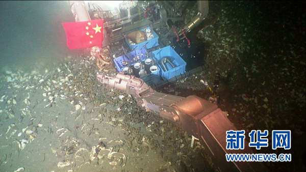 這是“海馬”號(hào)遙控潛水器拍攝的海底聯(lián)合工作過(guò)程。新華社發(fā)