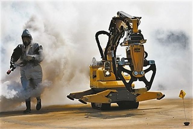 他是在真毒真防演練中,利用機器人等高科技裝備對突發(fā)事故進行應急處置的火箭軍防化兵