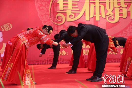 18對新人以“零彩禮”集體婚禮的形式步入幸福的婚姻殿堂,致敬青春。 蘆柯柯 攝