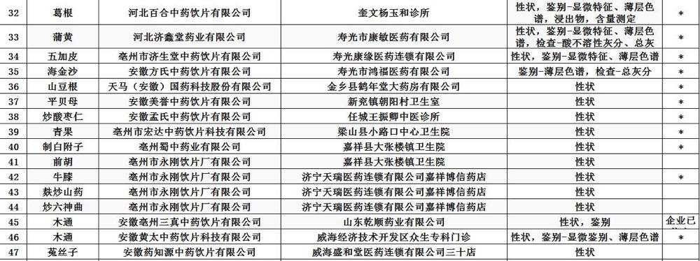經(jīng)濱州市食品藥品檢驗檢測中心等14家藥品檢驗機(jī)構(gòu)檢驗,標(biāo)示為河北凱諾制藥有限公司等2家企業(yè)生產(chǎn)的2批次藥品,標(biāo)示為金芍堂中藥飲片有限公司等47家企業(yè)生產(chǎn)的70批次中藥飲片不合格。