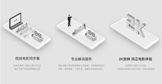發(fā)布會(huì)上,產(chǎn)品開發(fā)方對(duì)“院線電影同步看”、“版權(quán)保護(hù)端到端”、“2K觀影”、“解說服務(wù)”和即將發(fā)布的“HD版本”、“零點(diǎn)場”等功能進(jìn)行了詳細(xì)的介紹與展示。這標(biāo)志著,公映期影片線上、線下同步放映的時(shí)代或?qū)㈤_啟。
