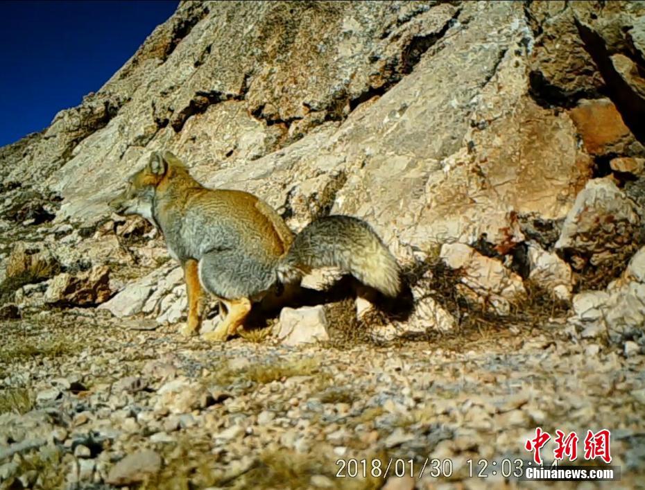 紅外相機拍攝到一只藏狐。文/趙朗 曾嘉 監(jiān)測畫面