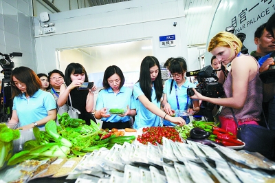 昨天(15日)上午,北京航空航天大學(xué)“月宮一號”實驗室,為期365+5天的世界上時間最長的“月宮365”實驗獲得圓滿成功。左圖:4位志愿者從實驗艙走出。上圖:從全密閉實驗艙中帶出的蔬果吸引了眾人的目光。本報記者 和冠欣攝