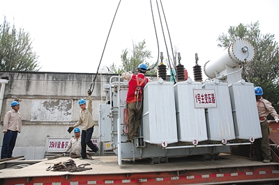 新機(jī)場(chǎng)跑道規(guī)劃范圍內(nèi)的老變電站將于本月拆除。昨日,南各莊變電站內(nèi)主變壓器拆除后吊運(yùn),宣告該變電站正式退役。