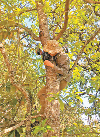 中國(guó)科學(xué)院昆明動(dòng)物研究所研究人員在安放紅外相機(jī),進(jìn)行鳥(niǎo)類監(jiān)測(cè)。中國(guó)科學(xué)院昆明動(dòng)物研究所鳥(niǎo)類學(xué)組供圖