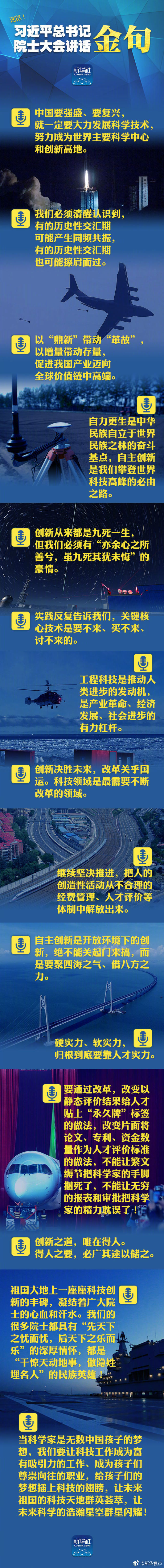 中國(guó)科學(xué)院第十九次院士大會(huì)、中國(guó)工程院第十四次院士大會(huì)28日上午在人民大會(huì)堂隆重開(kāi)幕。中共中央總書(shū)記、國(guó)家主席、中央軍委主席習(xí)近平出席會(huì)議并發(fā)表重要講話(huà)。 ????