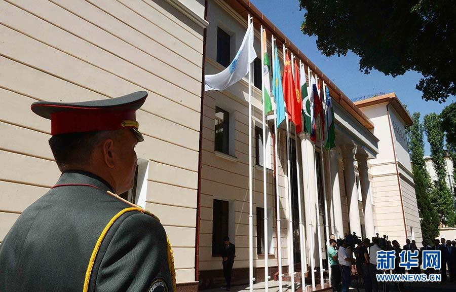 2017年6月15日,上合組織新成員印度、巴基斯坦兩國(guó)國(guó)旗,首次在設(shè)在北京的上合組織秘書(shū)處迎風(fēng)飄揚(yáng)。