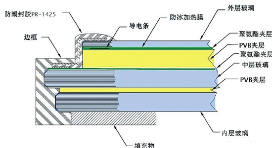 A320系列的風擋由多層不同的材料組成,最外層的是熱鋼化玻璃,位于中層和內(nèi)層的是化學強化玻璃,各層玻璃之間通過聚胺酯層和PVB層粘接在一起。