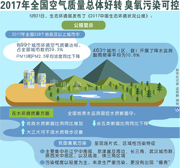 圖表:2017年全國(guó)空氣質(zhì)量總體好轉(zhuǎn) 臭氧污染可控 新華社記者 孟麗靜 編制