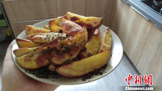 圖為用火山灰中長出的紅土豆制作的烤土豆。郭晨慧供圖