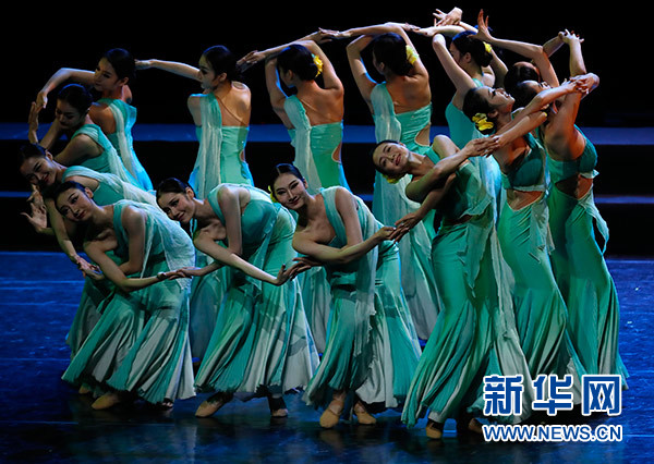6月1日,北京舞蹈學(xué)院中國民族民間舞系的演員在表演舞蹈《水色》。新華社記者 沈伯韓 攝