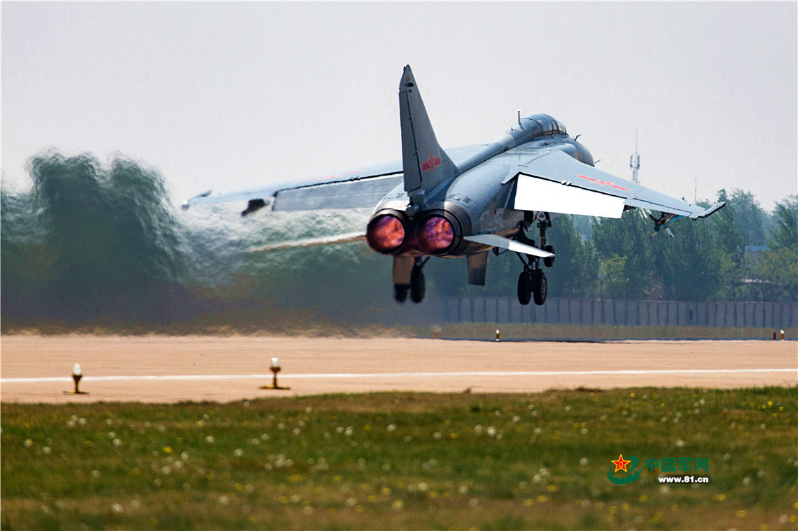 圖為“飛豹”戰(zhàn)機加力起飛。(孫振東 攝影 圖片來源:中國軍網(wǎng))