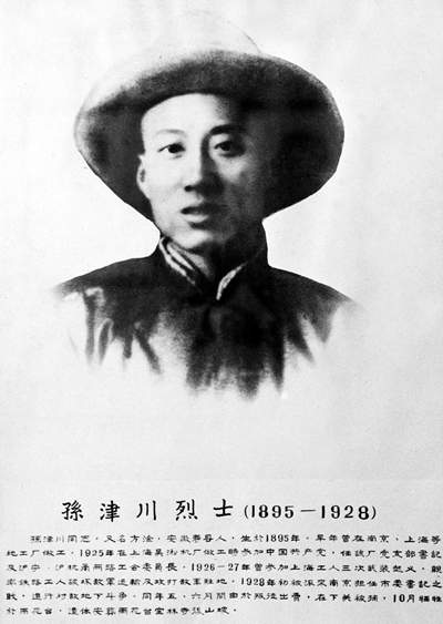 1925年8月經(jīng)彭干臣等介紹,孫津川加入中國(guó)共產(chǎn)黨,并當(dāng)選為滬寧鐵路工人協(xié)進(jìn)會(huì)委員。不久,中共吳淞機(jī)廠特別支部成立,孫津川被選為特支書記。