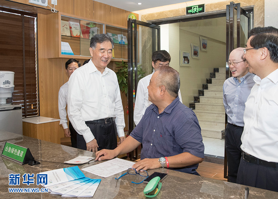 6月6日至7日,中共中央政治局常委、全國(guó)政協(xié)主席汪洋在廈門出席第十屆海峽論壇期間,就兩岸經(jīng)濟(jì)文化交流合作情況進(jìn)行調(diào)研。這是6月7日,汪洋在廈門市湖里區(qū)殿前街道興隆社區(qū)便民服務(wù)大廳了解臺(tái)胞在閩生活工作情況。新華社記者 王曄 攝