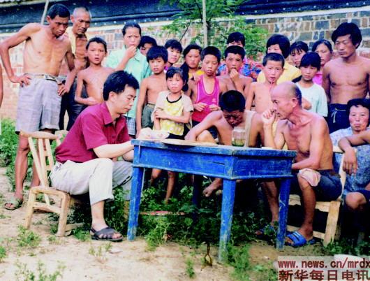 村頭上,一些人在樹(shù)下避太陽(yáng)。一聽(tīng)我問(wèn)陳家的事,立即圍攏過(guò)來(lái)敘說(shuō)。還有人趕緊跑著找來(lái)陳重申的弟弟陳重海、陳重奇。那一天奇熱難挨,除我以外的男子,幾乎全都短褲衩子光脊梁,我則長(zhǎng)褲短褂“正襟危坐”,加上一絲風(fēng)也透不進(jìn)人圈來(lái),更使我熱得汗流不止。褂子濕了,褲子濕了,拿筆的手濕了,捏采訪(fǎng)本的手也濕了。然而我顧不得擦一下汗,只是一個(gè)勁“嚓嚓”地往本子上記。偶爾停筆詢(xún)問(wèn)細(xì)節(jié),請(qǐng)幾個(gè)人同時(shí)證實(shí)某個(gè)事,掏出計(jì)算器計(jì)算每家的收入和負(fù)擔(dān)情況。越記心里越沉重,越算心里越難過(guò)。漸漸地,從我臉上往下淌的,有接連不斷的汗水,也有無(wú)法抑制的淚水。流進(jìn)口里的,說(shuō)不清是淚水,也說(shuō)不清是汗水,反正都又咸又澀。