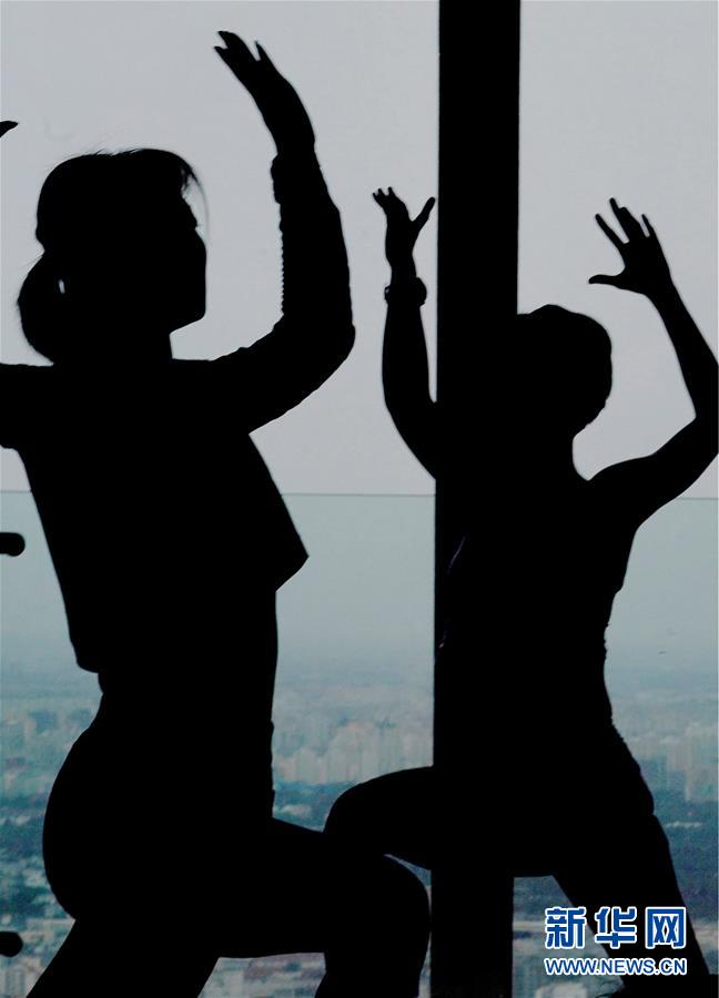 當(dāng)日,數(shù)名瑜伽愛好者在專業(yè)瑜伽教練的帶領(lǐng)下在北京國(guó)貿(mào)大酒店70層以上的高樓層練習(xí)瑜伽,體驗(yàn)高空練習(xí)瑜伽的樂趣。