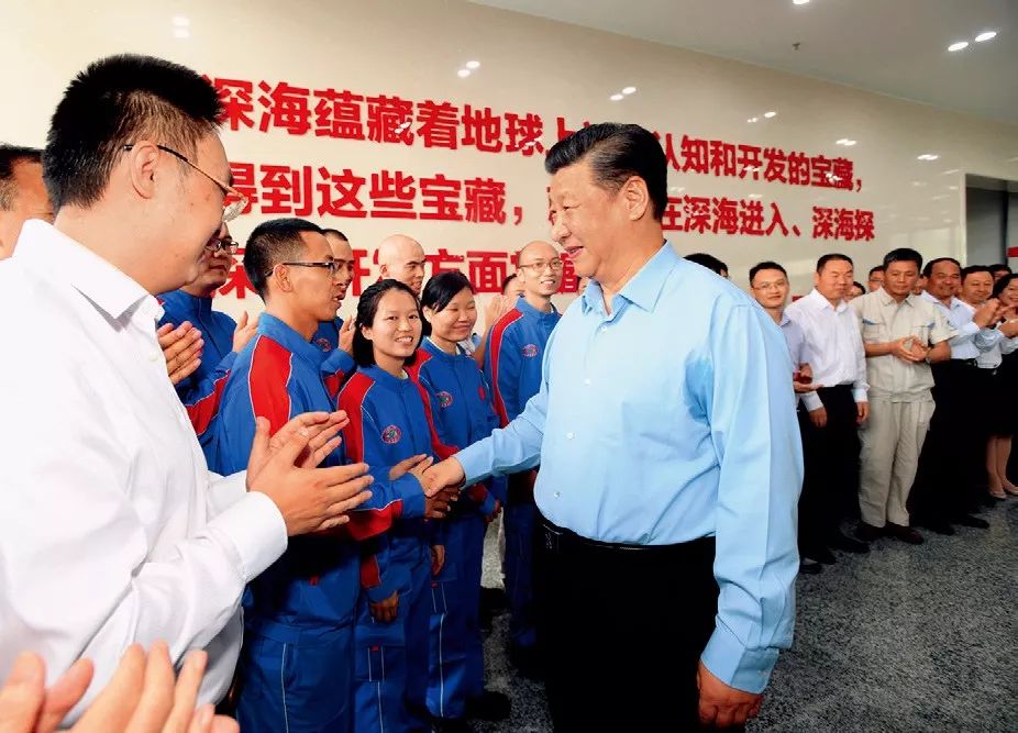 ▲ 4月12日,習(xí)近平總書記在位于三亞的中國科學(xué)院深??茖W(xué)與工程研究所,同“深海勇士”號載人潛水器設(shè)計師和深潛團(tuán)隊(duì)親切交談 李學(xué)仁攝