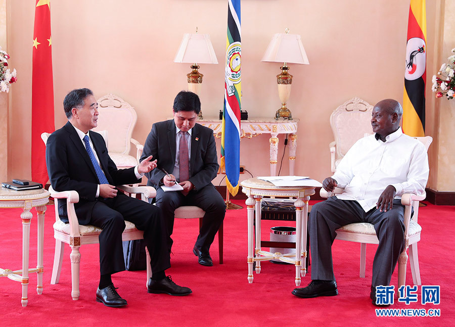 6月13日至16日,應(yīng)烏干達(dá)政府邀請,全國政協(xié)主席汪洋對烏干達(dá)進(jìn)行正式友好訪問。這是6月15日,烏干達(dá)總統(tǒng)穆塞韋尼會見汪洋。新華社記者 龐興雷 攝
