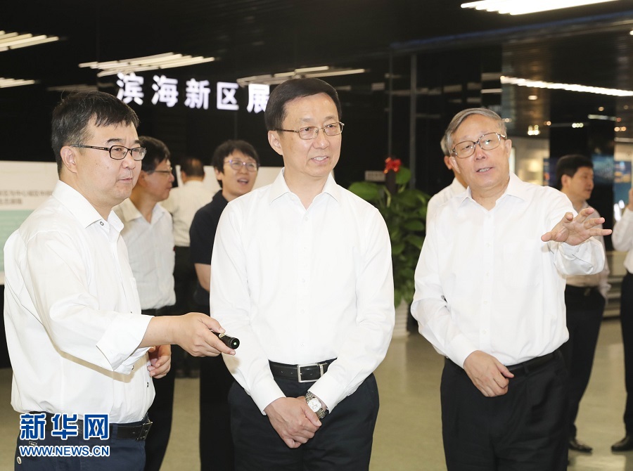 新華社天津6月20日電? 中共中央政治局常委、國務(wù)院副總理韓正6月19日在天津市調(diào)研京津冀協(xié)同發(fā)展工作。韓正前往天津市規(guī)劃展覽館,聽取天津市總體規(guī)劃及有關(guān)綠色生態(tài)屏障和濕地保護情況匯報;到科大訊飛人工智能產(chǎn)業(yè)示范基地,了解天津市加快建設(shè)全國先進制造研發(fā)基地和發(fā)展智能產(chǎn)業(yè)情況,察看企業(yè)在機器翻譯、智慧醫(yī)療、智慧教育等領(lǐng)域的最新研發(fā)成果;到天津濱海-中關(guān)村科技園,調(diào)研園區(qū)建設(shè)和企業(yè)落戶等情況,與入駐園區(qū)的企業(yè)職工互動交流;考察天津深之藍水下新視界科技有限公司、零氪科技(天津)有限公司,了解企業(yè)自主創(chuàng)新發(fā)展情況。
