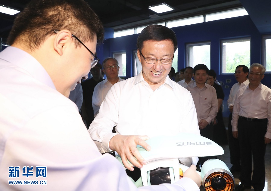 6月19日,中共中央政治局常委、國務(wù)院副總理韓正在天津市調(diào)研京津冀協(xié)同發(fā)展工作。這是韓正考察天津深之藍水下新視界科技有限公司。新華社記者 丁林 攝