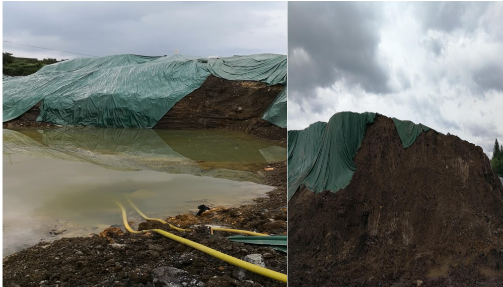 圖1 含鉛廢渣堆場集水嚴重、防滲膜破裂