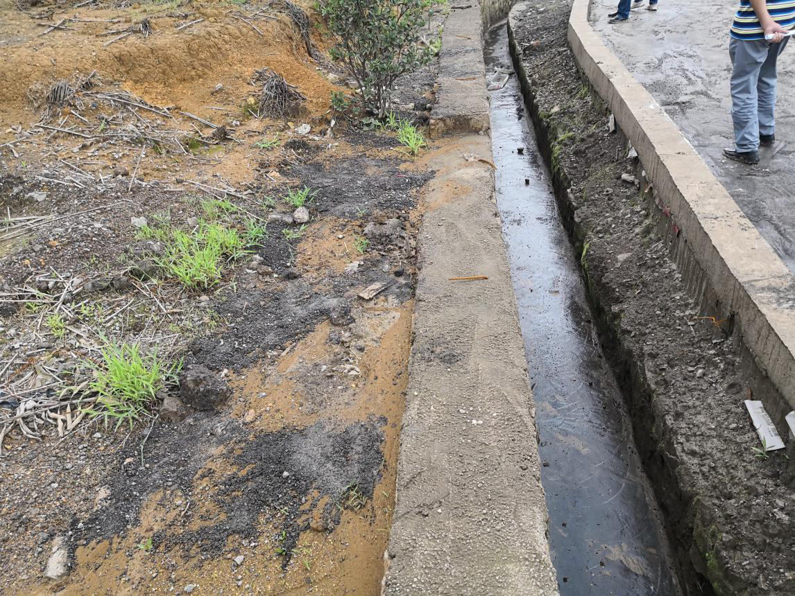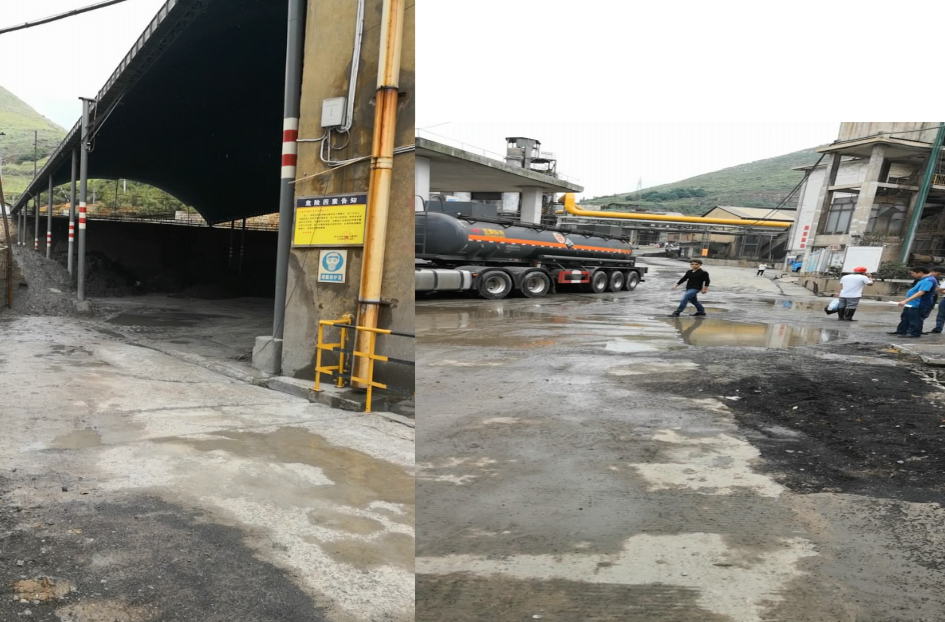 廠區(qū)沒有建設(shè)初期雨水收集系統(tǒng)。現(xiàn)場檢查時正值雨后,地面散落的含重金屬廢渣、粉塵經(jīng)雨水沖刷進入雨水溝,最終匯入廠區(qū)低洼處。但由于收集池容積小,大量雨水混著含有重金屬的污水溢流至廠區(qū)道路,廠區(qū)污水橫流。