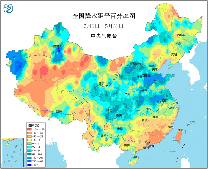 2018年3月到5月全國降水距平百分率