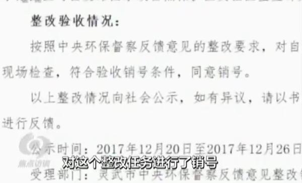 督察組認為太沙工業(yè)園很多整改沒有落到實處,屬于典型的虛假整改、敷衍整改。石嘴山市及平羅縣的相關(guān)部門沒有嚴(yán)格履行監(jiān)管職責(zé),對企業(yè)的環(huán)境污染問題熟視無睹,整改驗收走過場甚至假整改真銷號。2017年底,石嘴山市和平羅縣認為中央督察組反饋的整改方案已經(jīng)實施完成,對太沙工業(yè)園區(qū)大氣污染問題銷號并進行了網(wǎng)上公示。