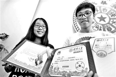 楊雨翔(右)成為清華大學第一個收到錄取通知書的2018級本科新生 攝影/本報記者 袁藝