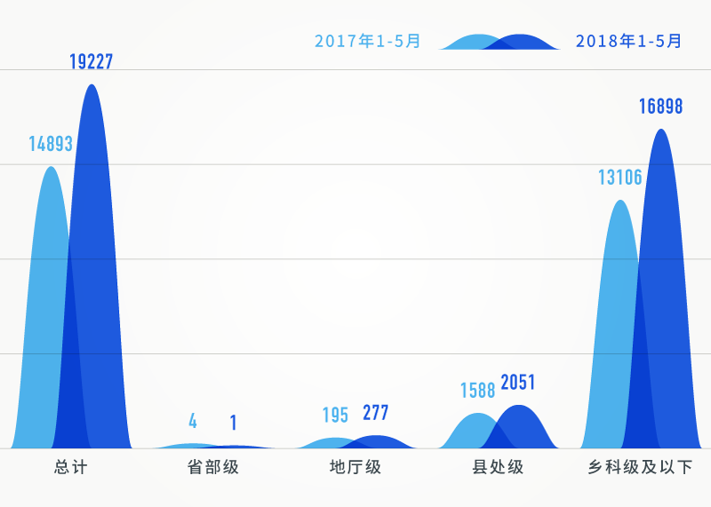 在給予黨政紀處分人數(shù)中,除省部級干部人數(shù)降低了以外,地廳級、縣處級、鄉(xiāng)科級及以下人數(shù)相比同期均大幅提升。特別是,今年1-5月,給予鄉(xiāng)科級及以下人員黨紀政務處分達16898人,相比同期增長28.9%,且占到了處分總?cè)藬?shù)的87.9%。反映出全面從嚴治黨不斷向基層延伸,持續(xù)加大查處群眾身邊的“四風”和腐敗問題力度。