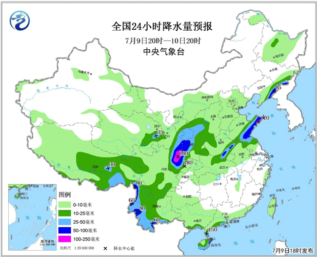馬學(xué)款:未來幾天,我國主雨帶主要集中在四川盆地、西北地區(qū)東部、華北到東北等地。其中7月10日至11日,四川盆地西部、西北地區(qū)東部、華北、東北地區(qū)南部等地將有一次明顯降雨過程,大部地區(qū)有中到大雨,部分地區(qū)有暴雨,四川盆地西部、甘肅東南部、陜西西南部等地局地有大暴雨。11日上午前后,臺(tái)風(fēng)“瑪莉亞”將在福建北部到浙江南部一帶沿海登陸,受其影響,10日夜間至12日,我國臺(tái)灣島以東洋面、臺(tái)灣海峽、東海中南部海域、閩浙臺(tái)沿海將有較大風(fēng)雨天氣,臺(tái)灣島、福建、浙江南部、江西等地有暴雨或大暴雨、沿海局地有特大暴雨。