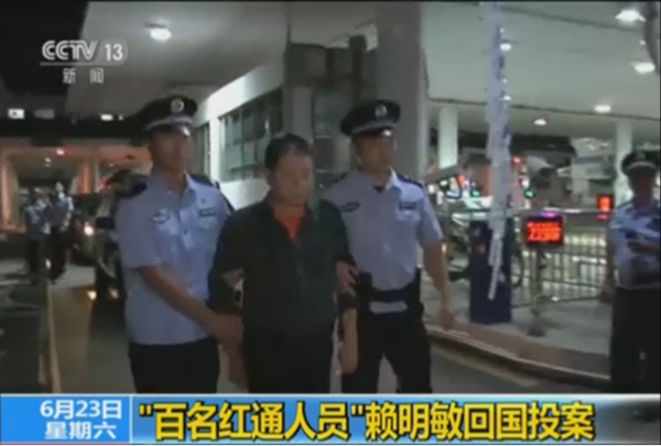 2018年6月22日,中國銀行江門分行原行長賴明敏回國投案自首,并主動退贓,成為國家監(jiān)委成立后首個到案的“百名紅通人員”。
