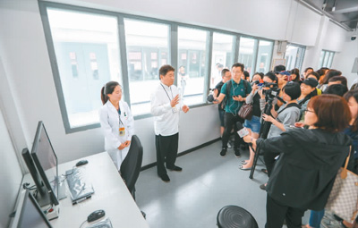 一部《我在故宮修文物》讓故宮成為了網(wǎng)紅。其中提到的文物醫(yī)院令人心馳神往。在2018年6月9日“文化和自然遺產(chǎn)日”當(dāng)天,故宮文物醫(yī)院迎來了第一批40名預(yù)約觀眾。圖為故宮博物院院長單霽翔(左二)在故宮文物醫(yī)院首次開放活動現(xiàn)場為觀眾講解。新華社記者 劉 潺攝