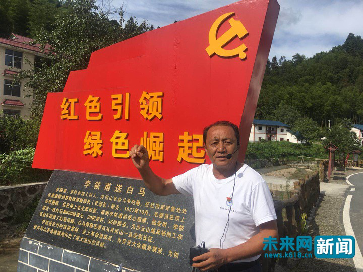 井岡山市茅坪鄉(xiāng)壩上村村民李祖芳講解紅軍故事。未來網(wǎng)記者 楊佩穎 攝