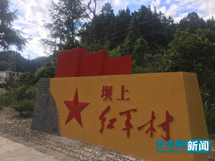 經(jīng)過顛簸的盤山水泥公路,走進(jìn)群山環(huán)繞的茅坪鄉(xiāng)壩上村,小橋流水、田野房屋相間,紅瓦白墻上的8幅手繪圖生動(dòng)展現(xiàn)著紅軍故事,道路兩邊插滿了紅旗,成片的荷花在荷塘綻放,溪水之上,小橋與石墻之間,農(nóng)戶用鐵絲拉網(wǎng),種起了野生獼猴桃和絲瓜。這里每天都有很多游客過來體驗(yàn)紅軍生活,聆聽紅軍故事、做紅軍飯、走紅軍路,因此壩上村又叫紅軍村。