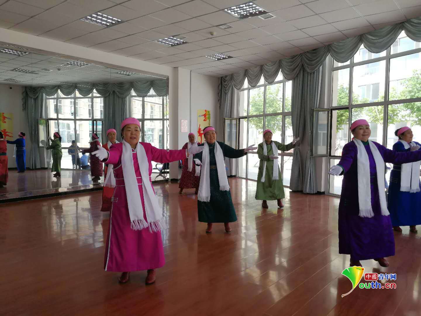愛(ài)祺樂(lè)牧民養(yǎng)老園區(qū)內(nèi)的老人們?cè)谶M(jìn)行歌舞表演。中國(guó)青年網(wǎng)記者王曉蕓 攝