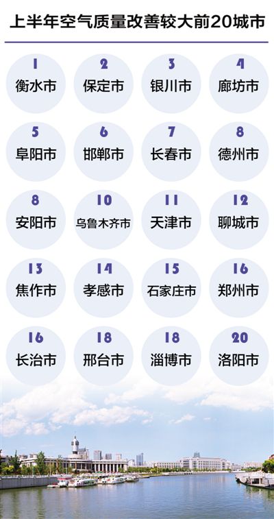 今年上半年,169個(gè)城市中,臨汾、石家莊、邢臺(tái)等20個(gè)城市空氣質(zhì)量相對(duì)較差;???、黃山、拉薩等20個(gè)城市空氣質(zhì)量相對(duì)較好。與去年同期相比,169個(gè)城市中,衡水、保定、銀川等20個(gè)城市空氣質(zhì)量改善幅度相對(duì)較好;常州、西寧、嘉興等20個(gè)城市空氣質(zhì)量改善幅度相對(duì)較差。