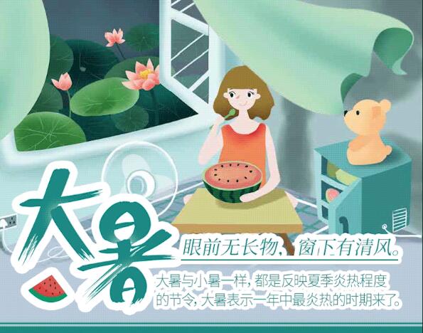 23日(周一),“大暑”節(jié)氣將正式登場(chǎng)。專家提示,此時(shí)節(jié)是一年里最熱的時(shí)候,公眾在飲食起居上,宜多喝水常食粥,晚睡早起適當(dāng)午睡,祛除暑熱待秋來(lái)。>>>