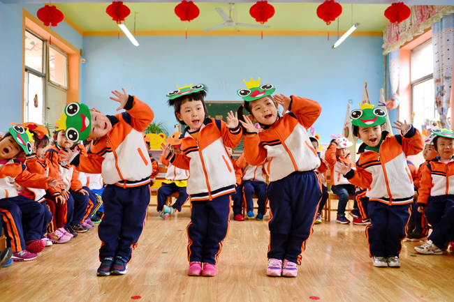 河北省邢臺市橋東區(qū)第二幼兒園的小朋友們在唱兒歌 牟宇 攝