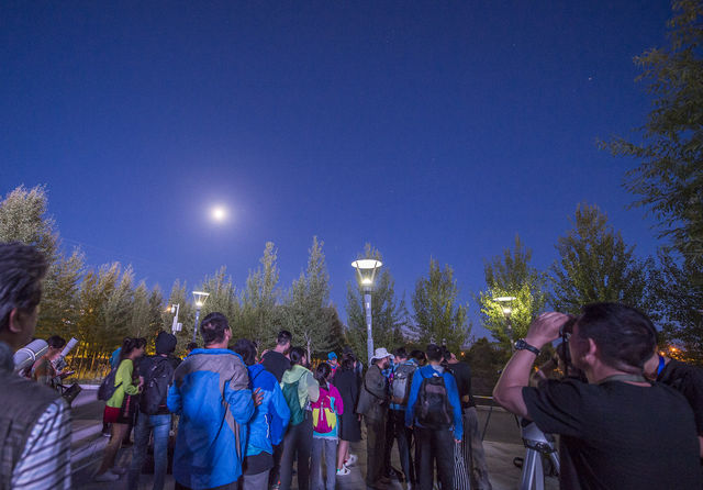 天文愛好者在德令哈天文科普館前觀星(喻菲攝)