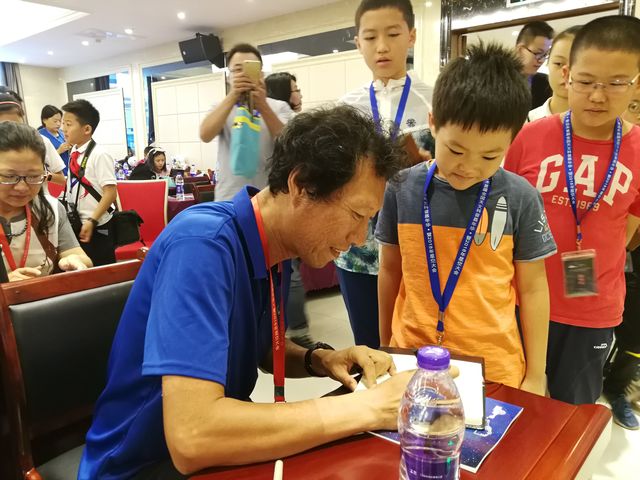 北京天文館館長朱進(jìn)為小天文愛好者簽名留念(喻菲攝)