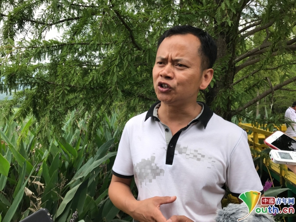 李潤榮向記者介紹茈碧湖環(huán)境治理和幫扶貧困戶情況。中國青年網(wǎng)記者 張瑞宇攝