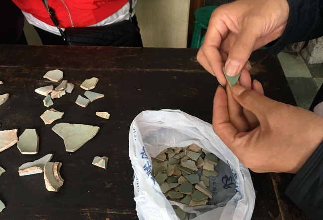 在汝州古玩一條街,半月談記者佯裝成購買瓷片者向一位古玩商店老板咨詢,他從抽屜深處翻出一個不起眼的塑料袋,將幾十塊小瓷片倒在了桌面上供半月談記者挑選?!斑@一堆6000元,這一小堆2000元……你來得晚了,好的都被別人買走了?!?/p>